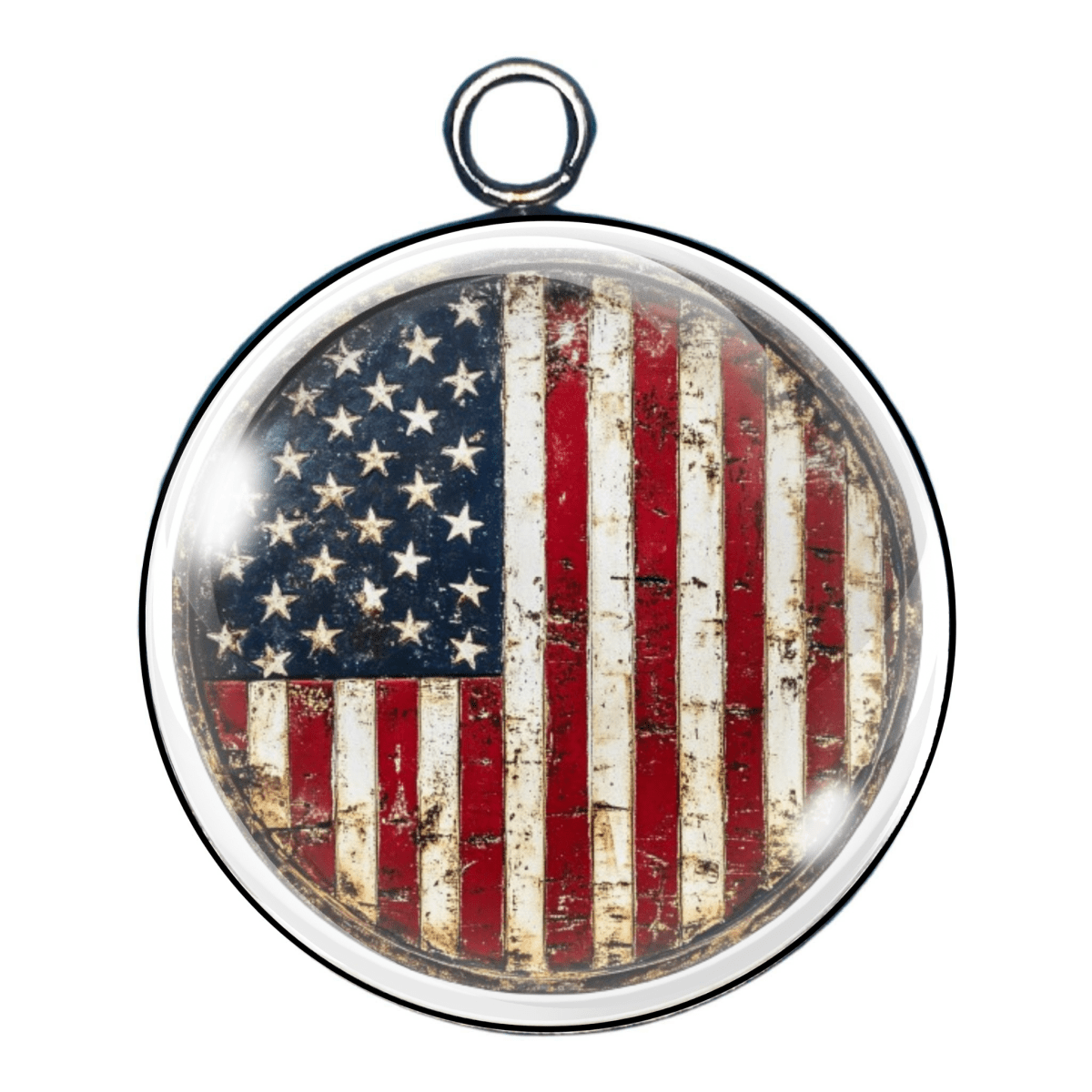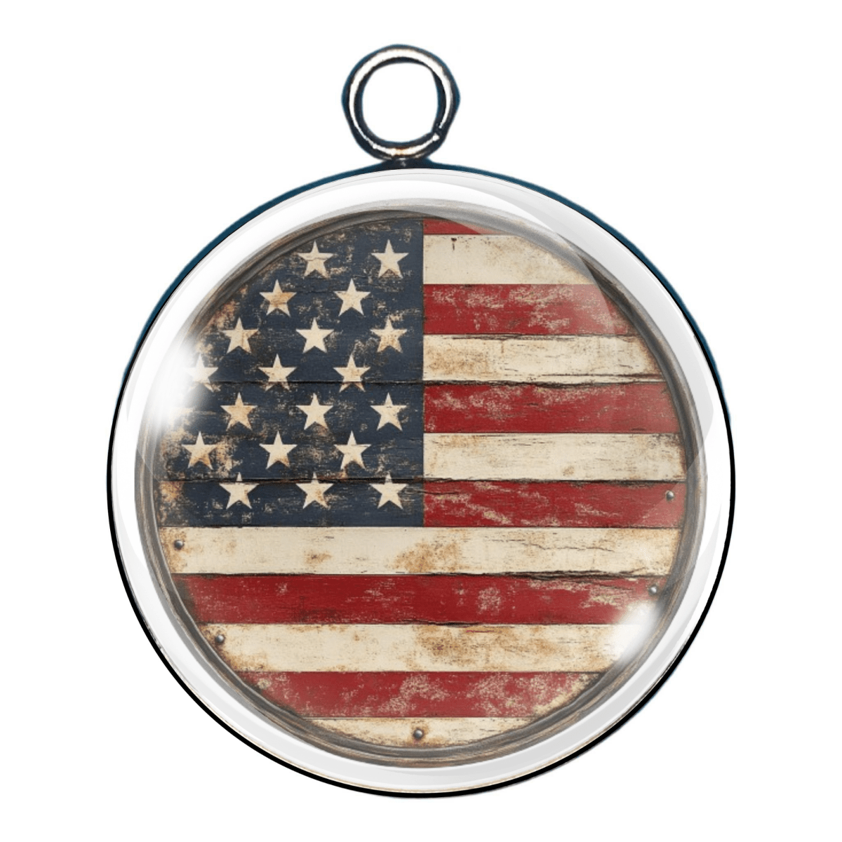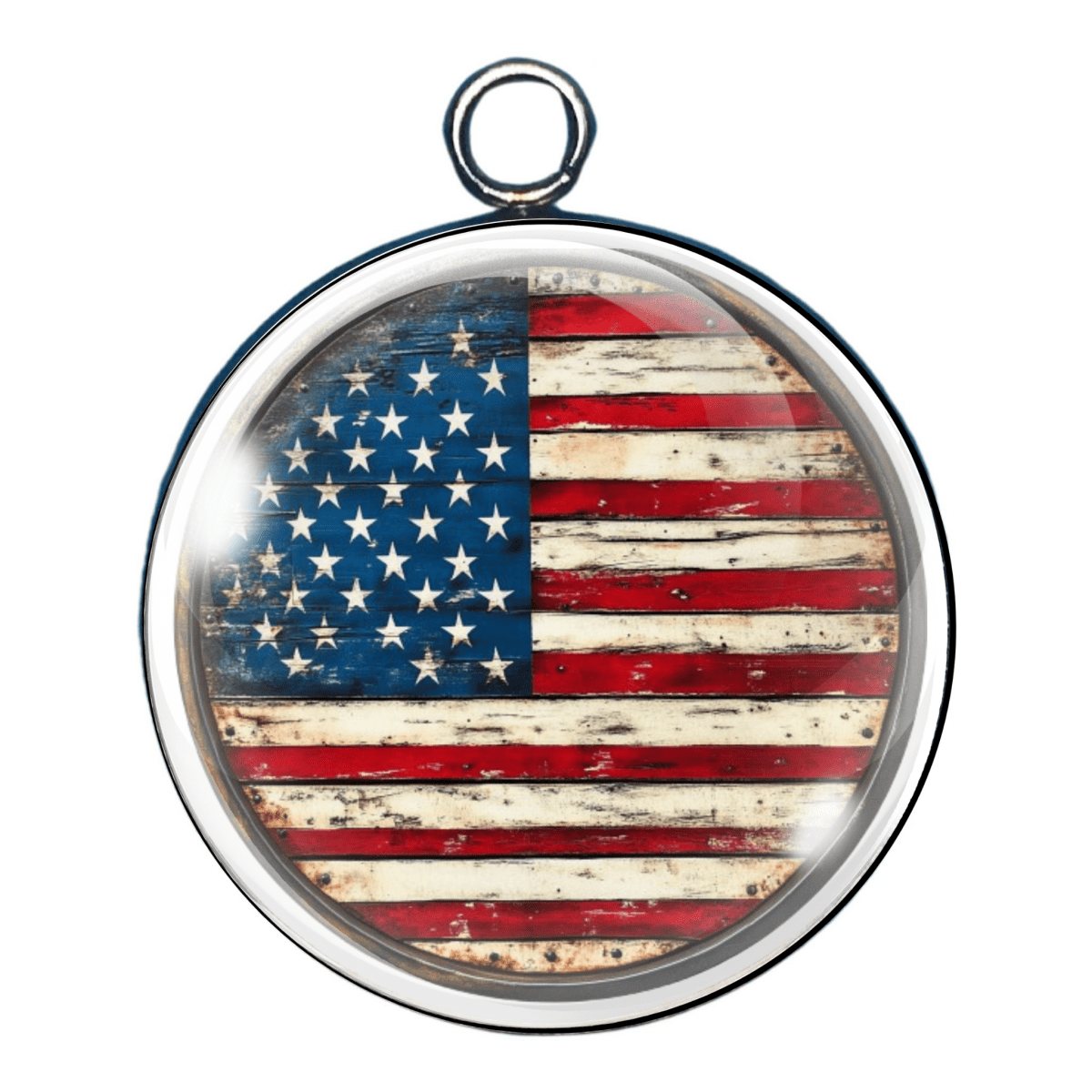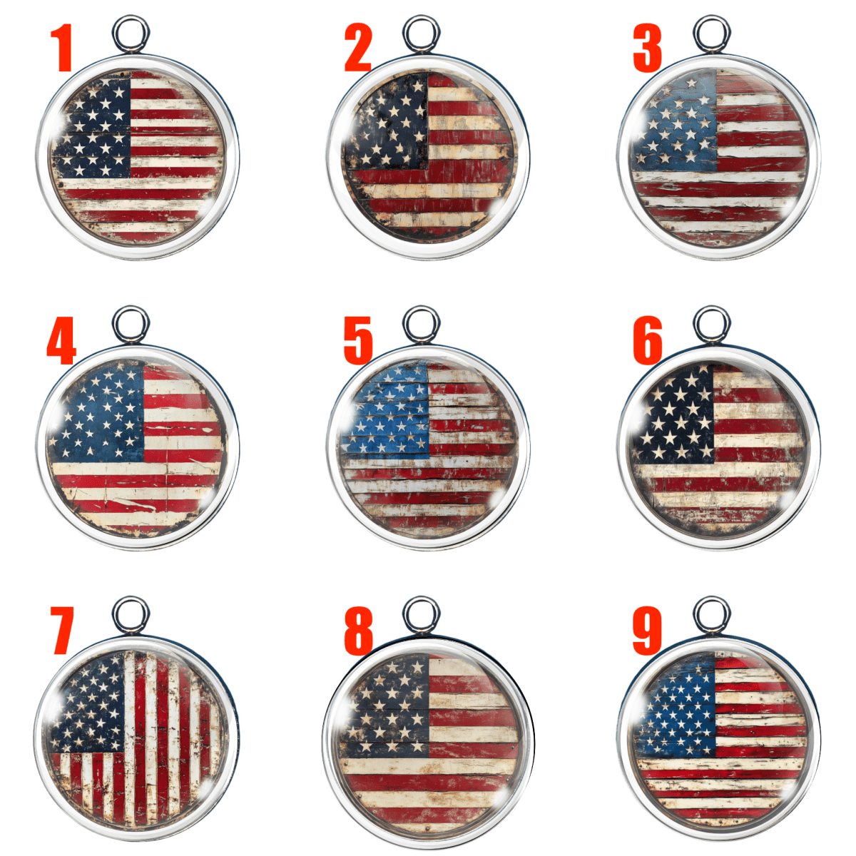 Rustic American Flag Glass Charms – Patriotic Pendants for DIY Jewelry & Crafts
