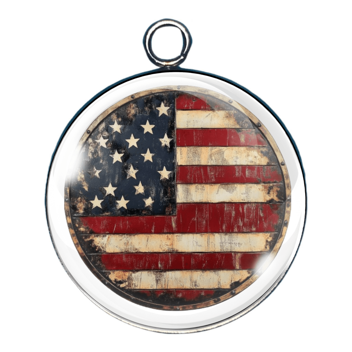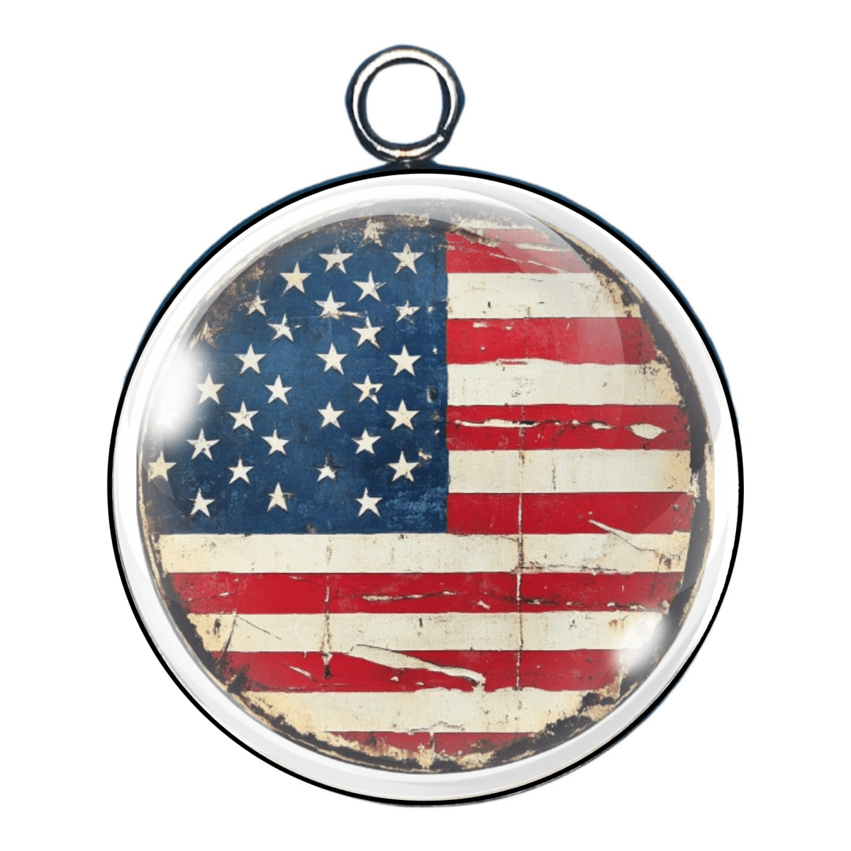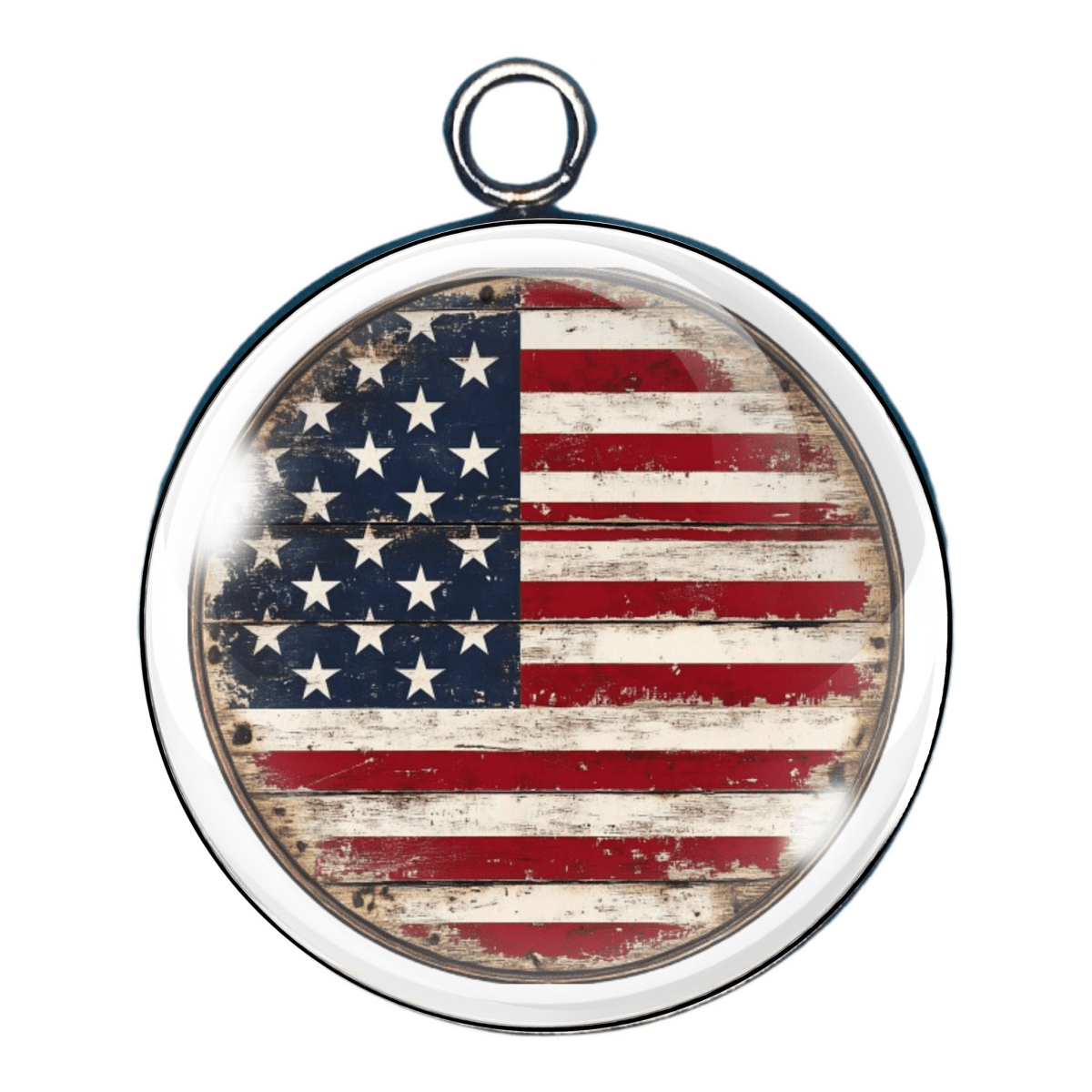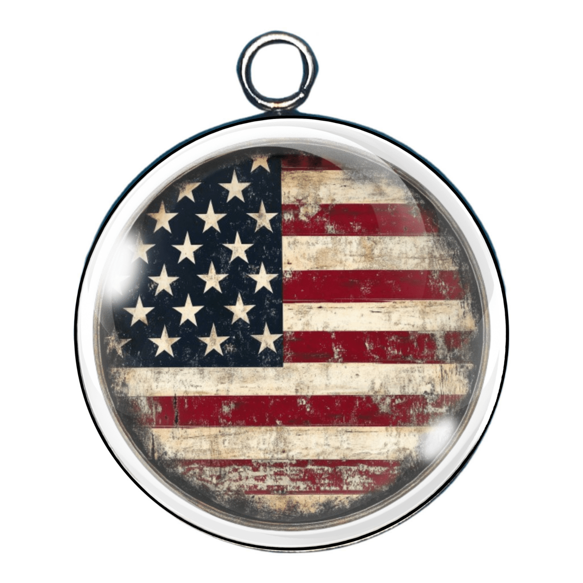 Rustic American Flag Glass Charms – Patriotic Pendants for DIY Jewelry & Crafts