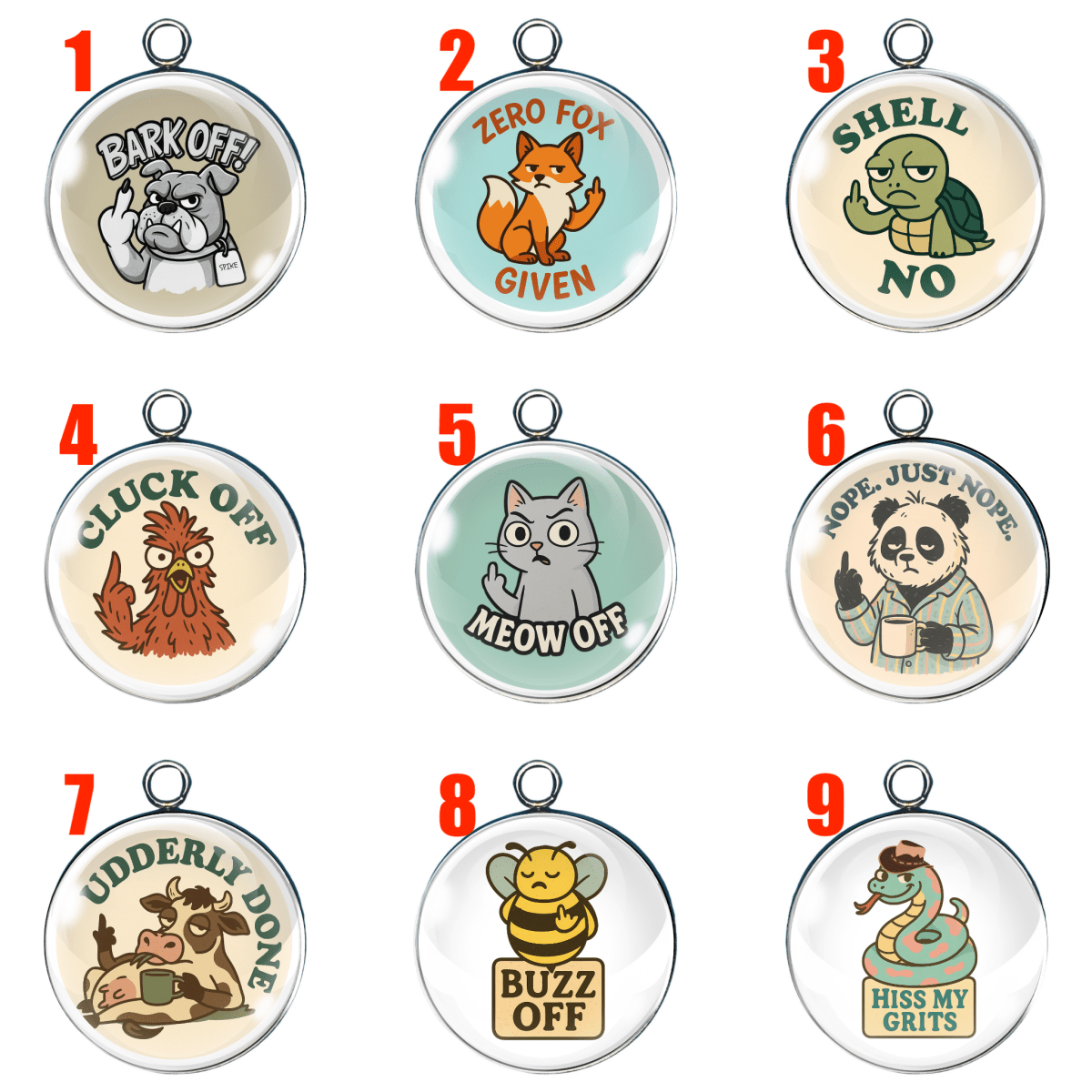 Meet our newest collection of Sassy Animal Glass Cabochon Charms, starring a line-up of fabulous furballs and feathered friends flipping the bird with attitude. Whether you're in a "Meow Off" mood or feeling “Udderly Done,” there's a charm for every vibe.