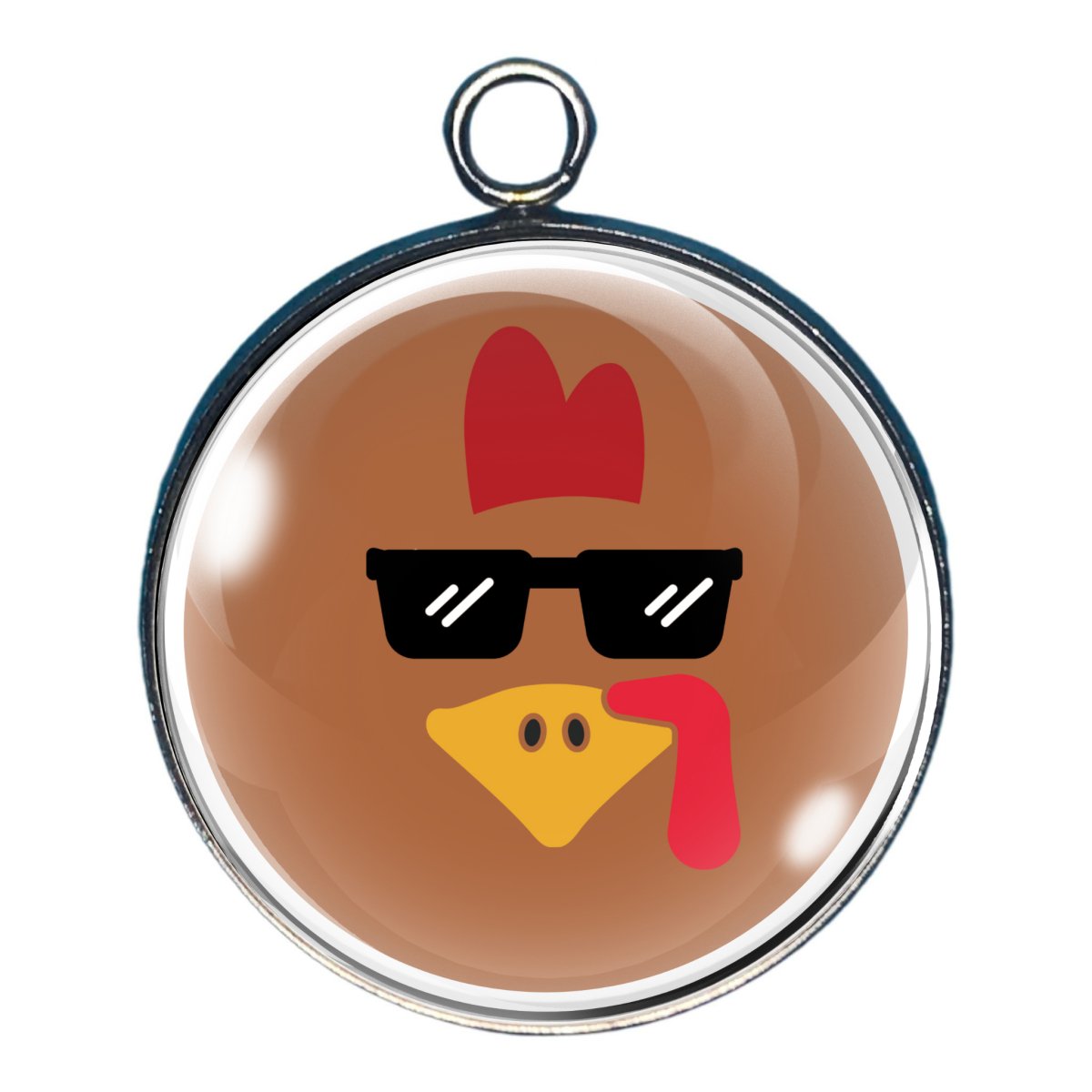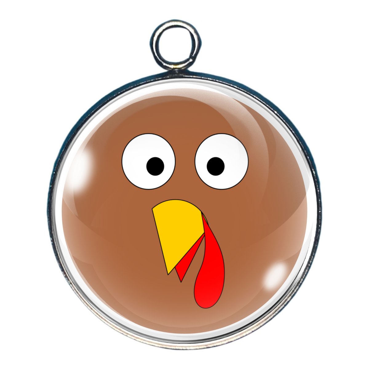 Silly Brown Turkey Faces Glass Cabochon Charms