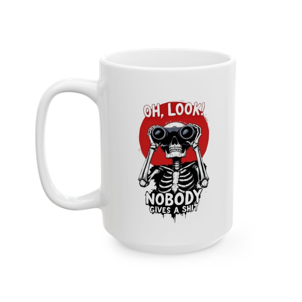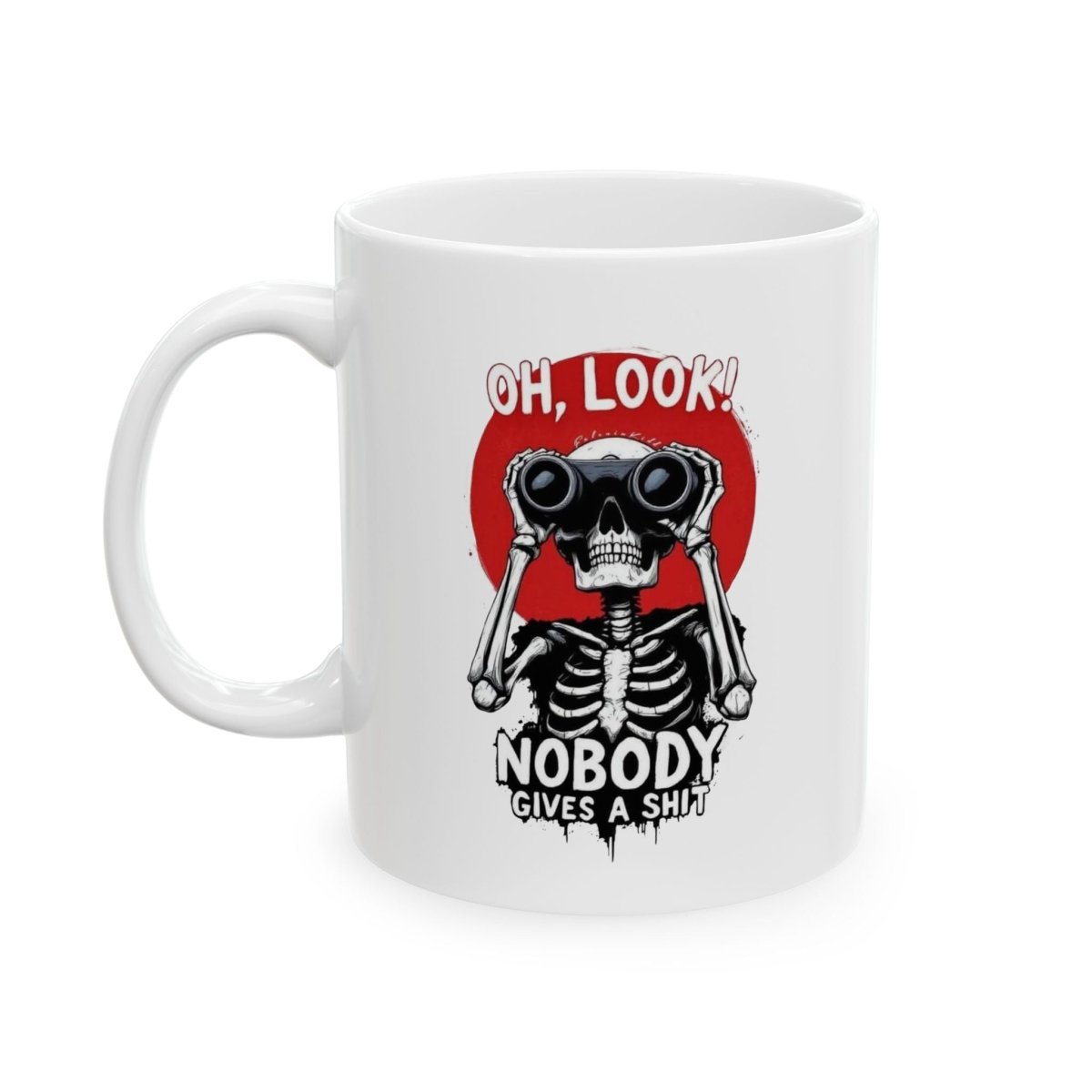 Start your day the sassy way with our "Oh Look, Nobody Gives a Sh*t" Skeleton Mug – perfect for those who like their coffee strong and their sarcasm stronger. Featuring a bold skeleton graphic with a vintage pop of red, this mug doesn't whisper attitude—it shouts it.