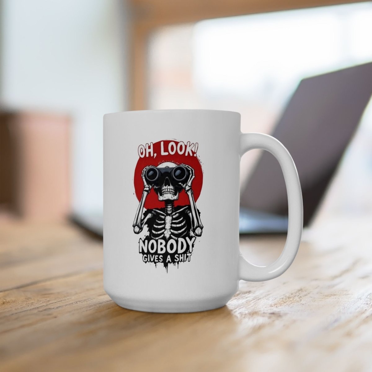 Skeleton Sarcasm Mug – “Oh Look, Nobody Gives a Sh*t” Funny Coffee Cup