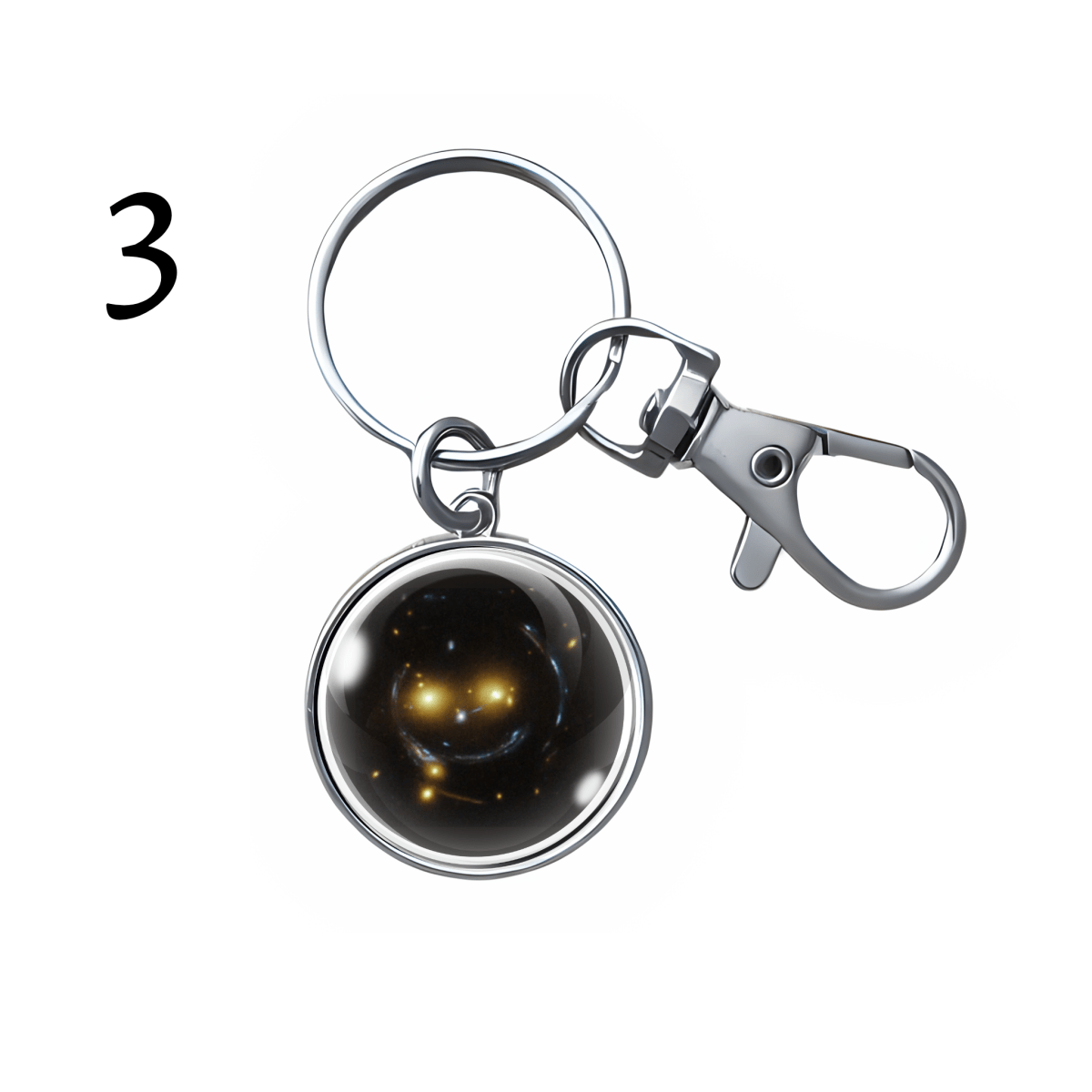 Brighten your keyring with a charm straight from the stars! This keychain features the Smiley Face Galaxy—the real, 4.5-billion-light-year-away cosmic cluster (SDSS J1038+4849) known for its joyful grin.