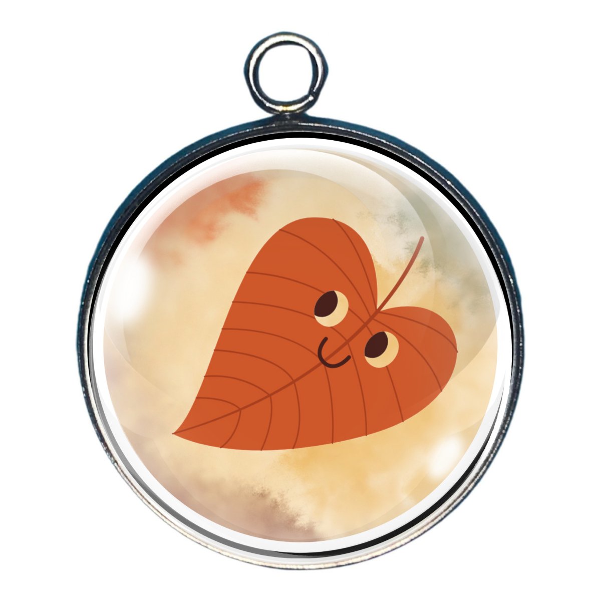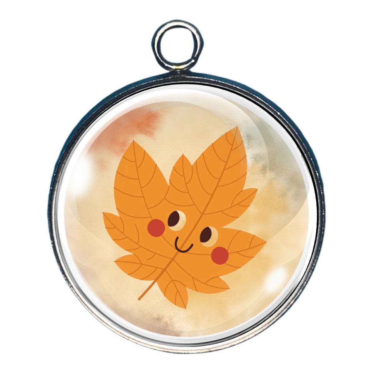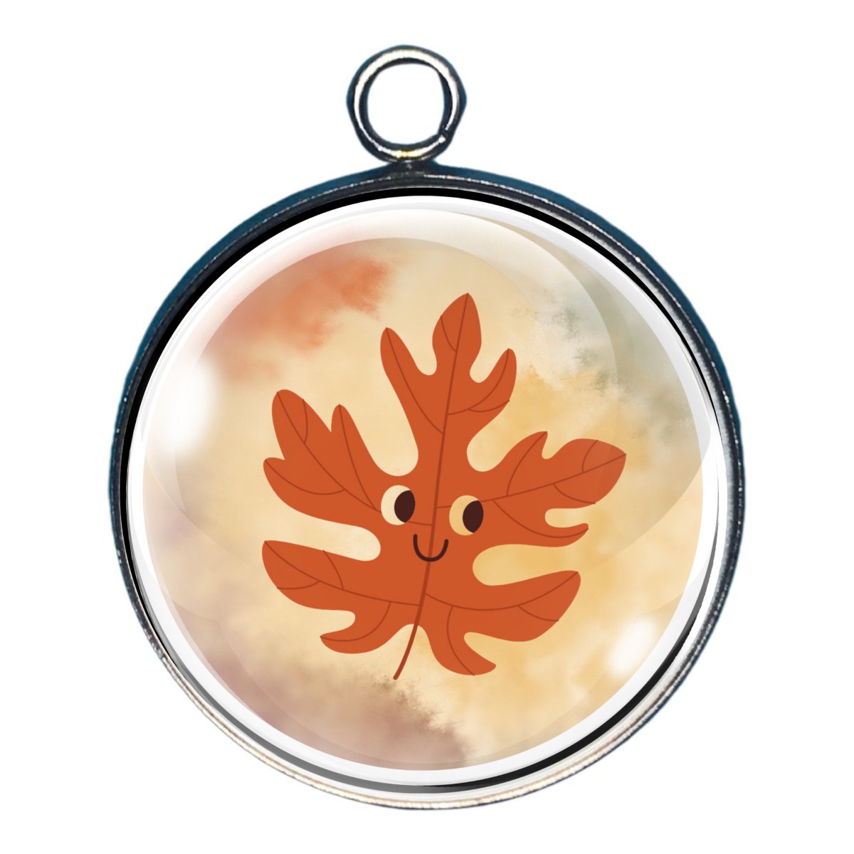 Smiling Fall Leaves Glass Cabochon Charms