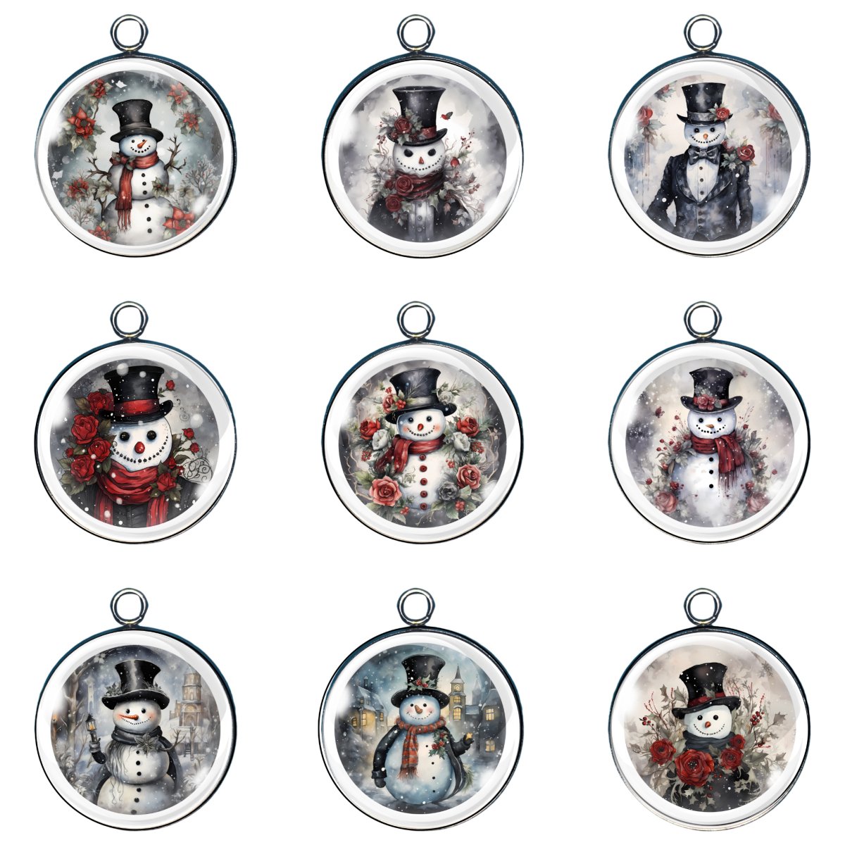 Snowman Glass Cabochon Charms, Goth Snowmen Charms