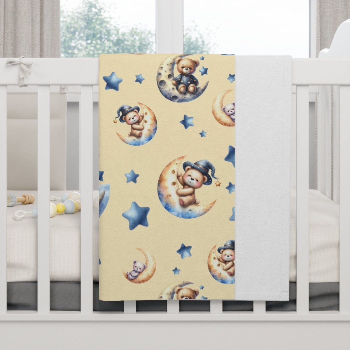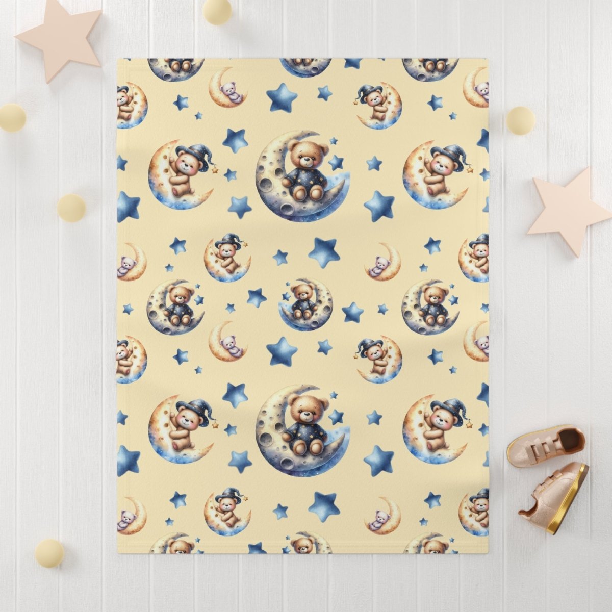 Baby Blanket - Cute Bears on Crescent Moons and Stars Design
