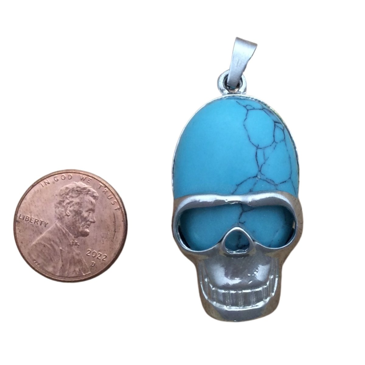 Capture attention and make a statement with our Turquoise Skull Pendant. The vibrant turquoise stone adds a pop of color while the intricately designed Tibetan Silver skull represents strength and individuality. Perfect for those who want to stand out and embrace their unique style.