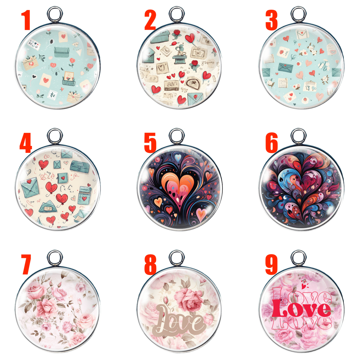 Bring some love and charm into your jewelry collection with these Valentine Print Glass Cabochon Charms! Each glass charm is adorned with a unique and eye-catching Valentine's Day print that will add a playful touch to any outfit. Perfect for showing off your fun and quirky side!