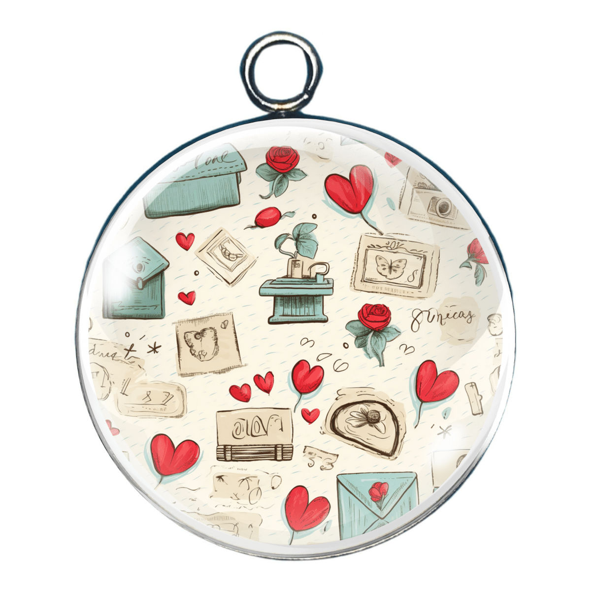 Valentine Print Glass Cabochon Charms