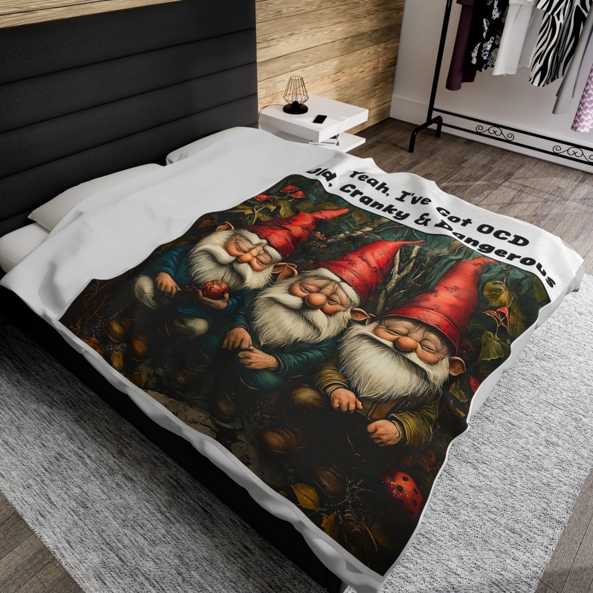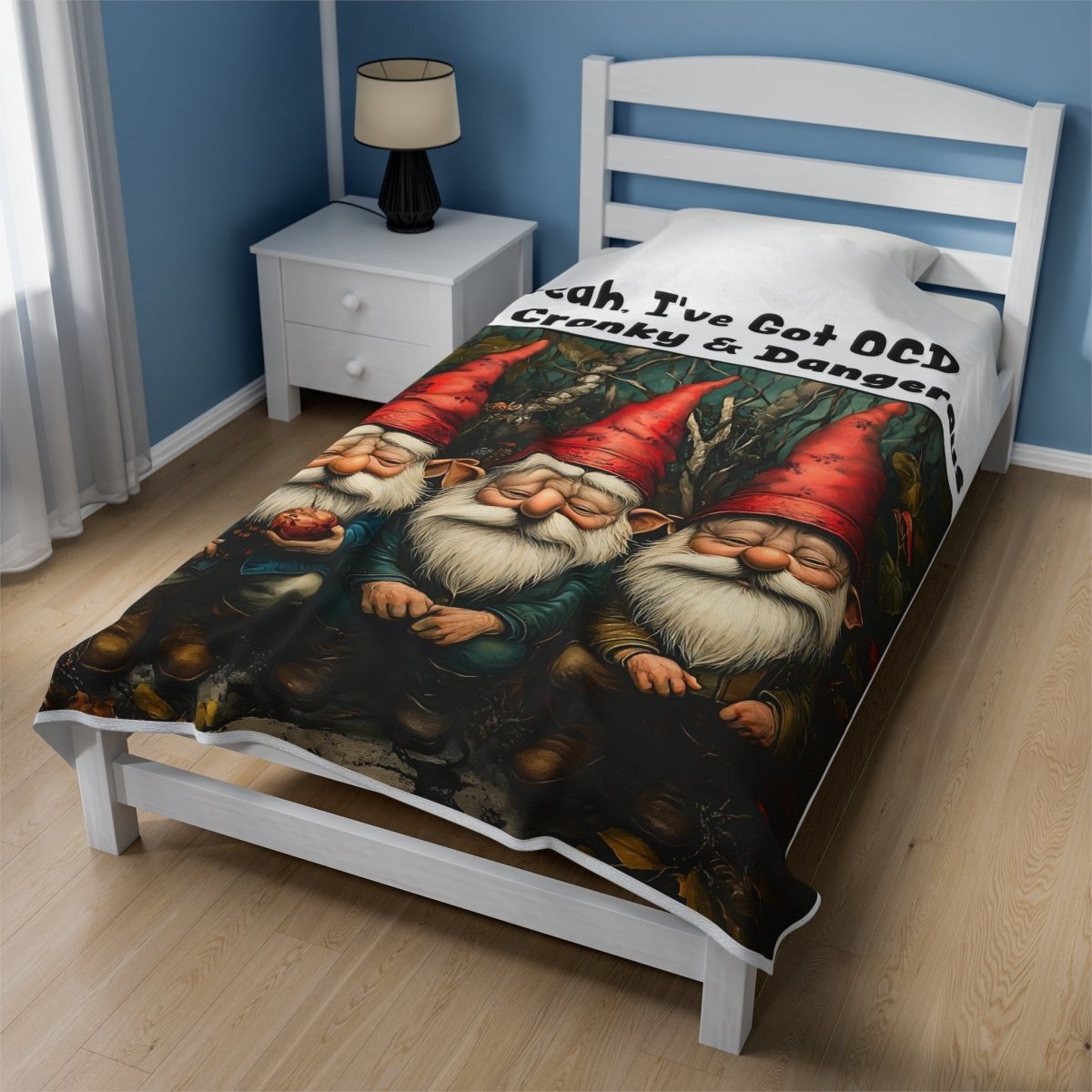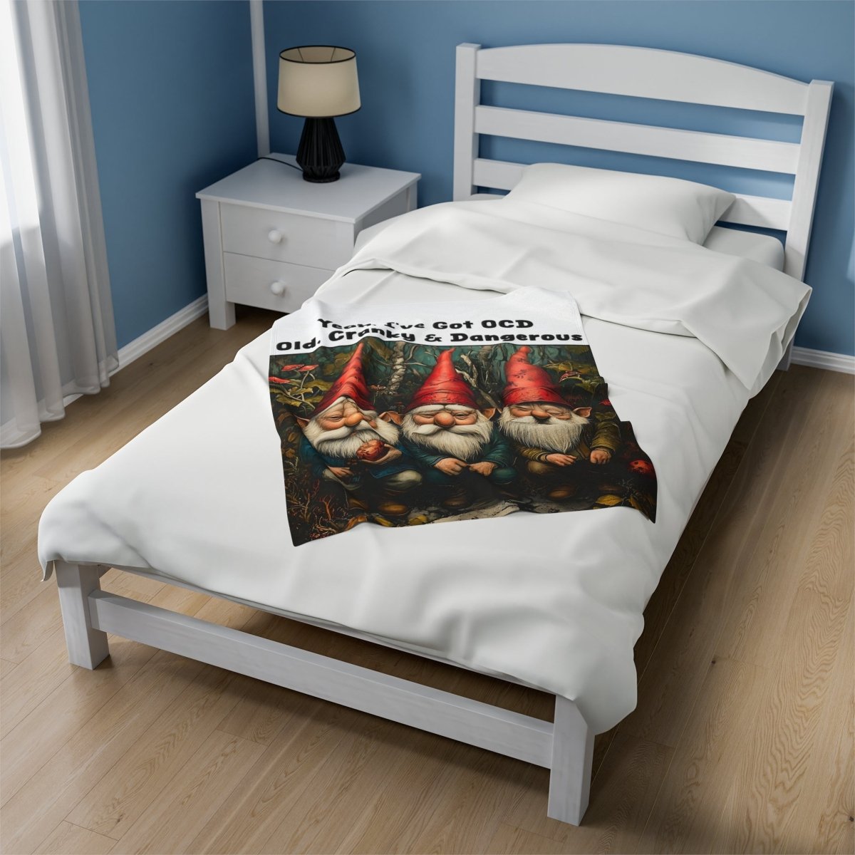 Velveteen Plush Blanket - OCD Gnomes, Cozy Throw Blanket, Soft Fleece Bedspread,