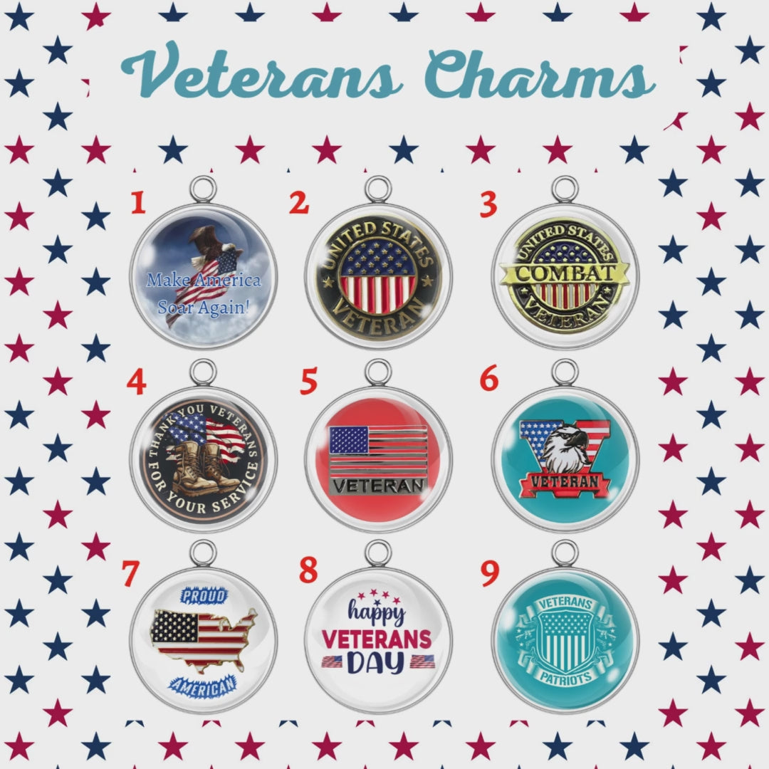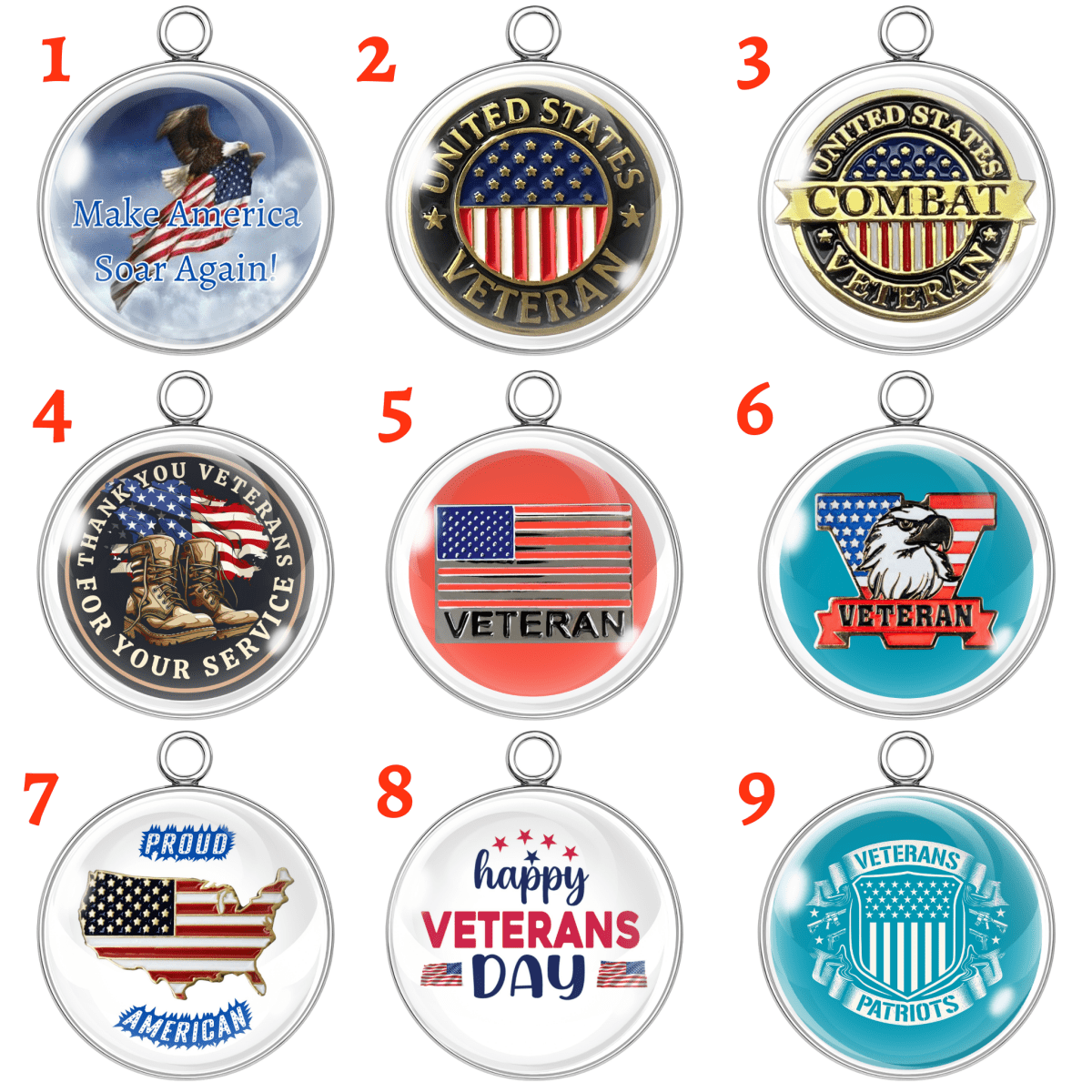 Veteran & Patriotic Glass Cabochon Charms – 9 Bold USA Designs