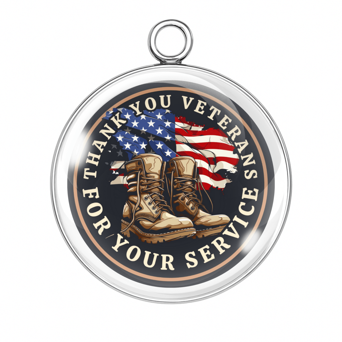 Our Veteran & Patriotic Glass Cabochon Charms are made to honor heroes and shine with American spirit. With 9 heartfelt designs—featuring eagles, flags, combat tributes, and patriotic messages—these charms are perfect for jewelry, gifts, crafts, or displays that say “thank you.”