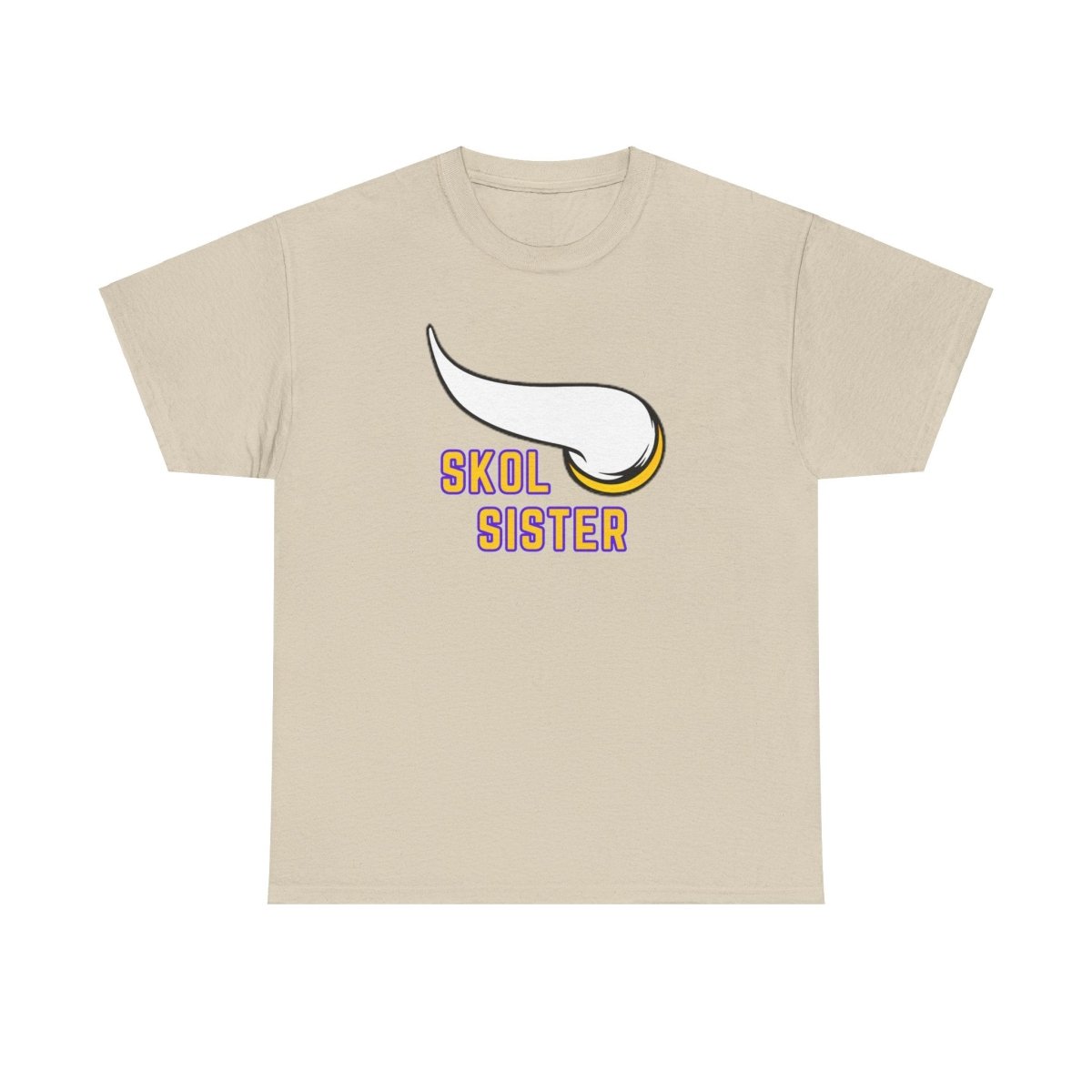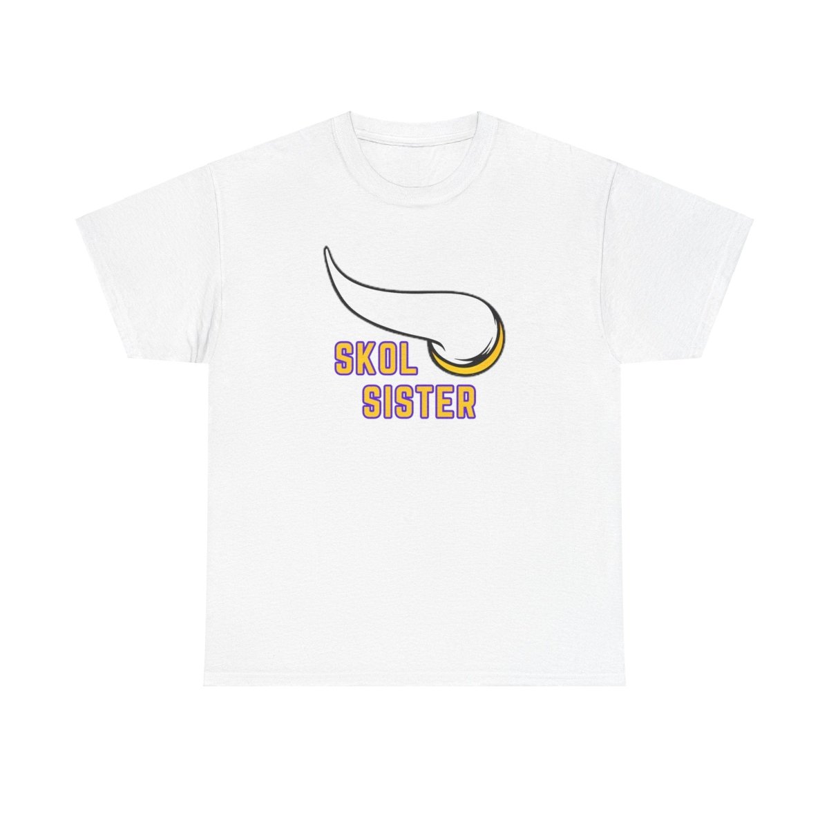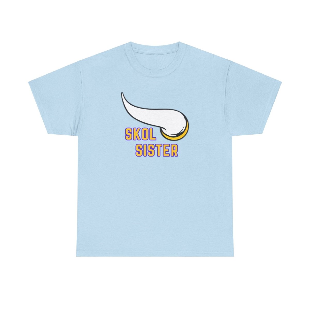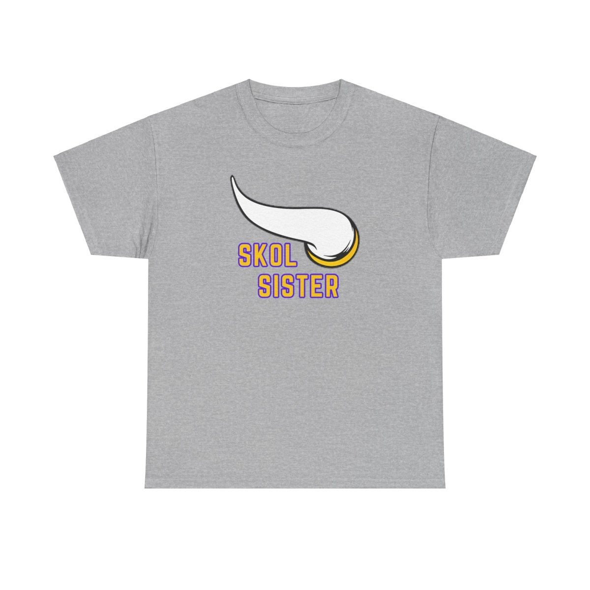 A Skol sister is tee perfect for die-hard fans to show their team pride. This unisex heavy cotton tee offers year-round comfort, durability, and a classic fit for a relaxed and neat look. Ideal for game days, sports events, and everyday casual wear.