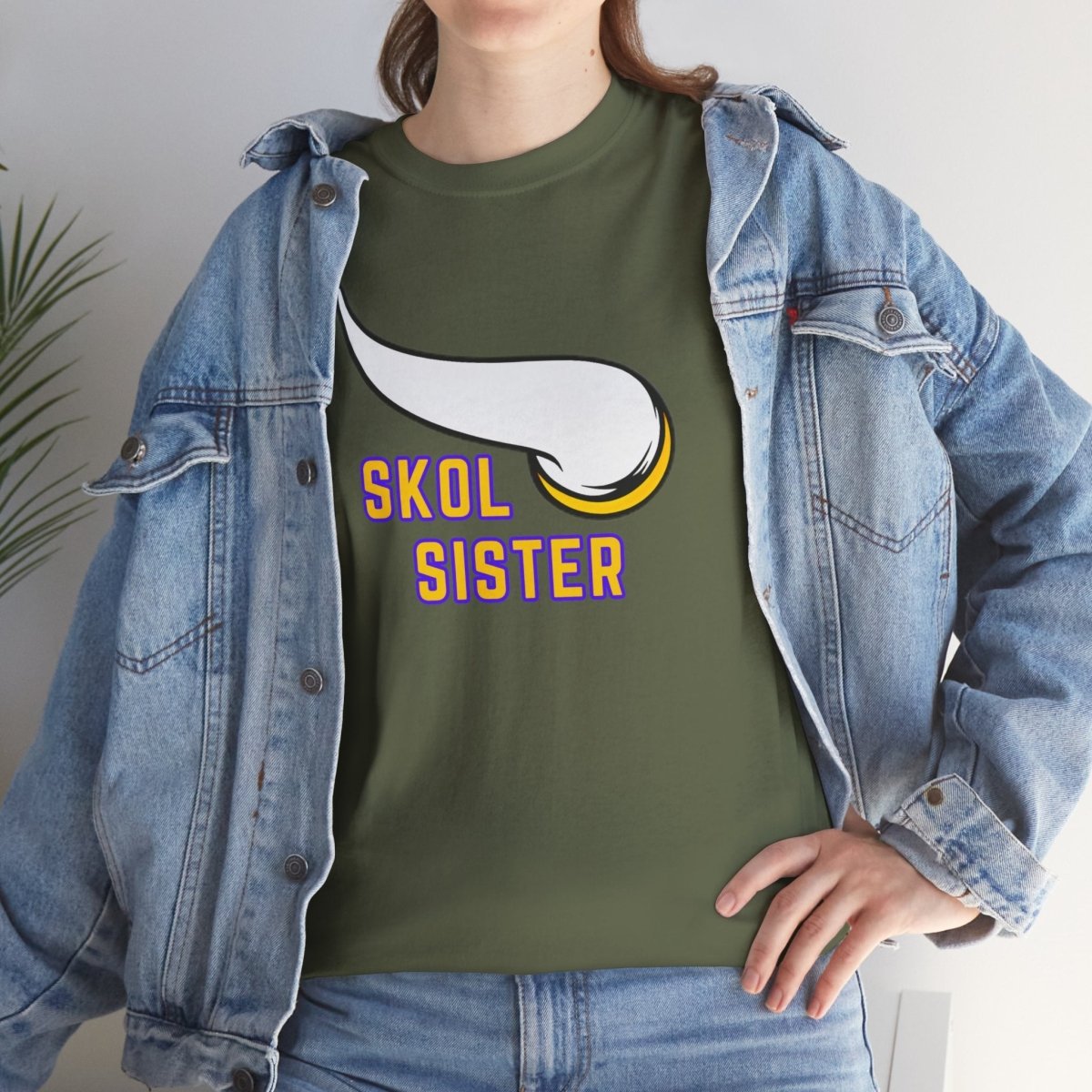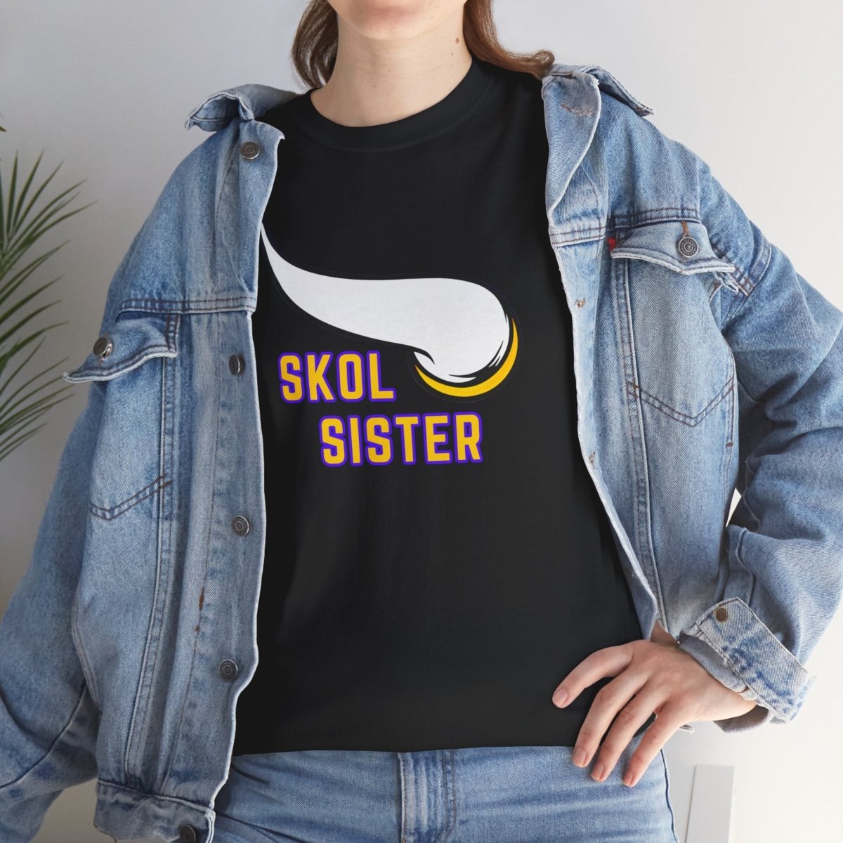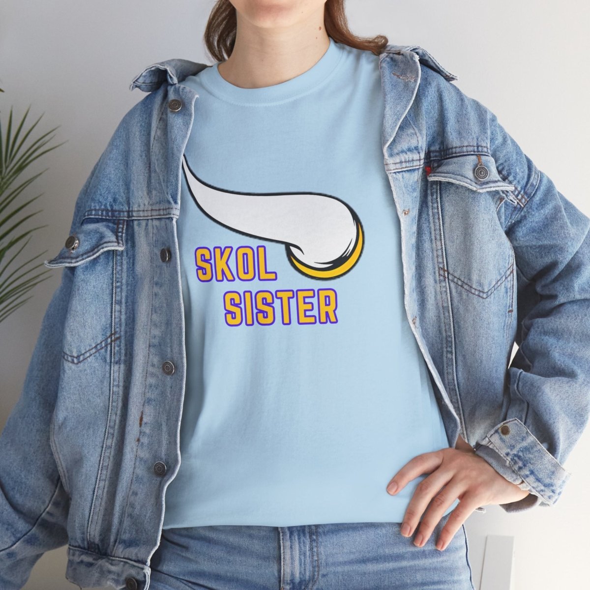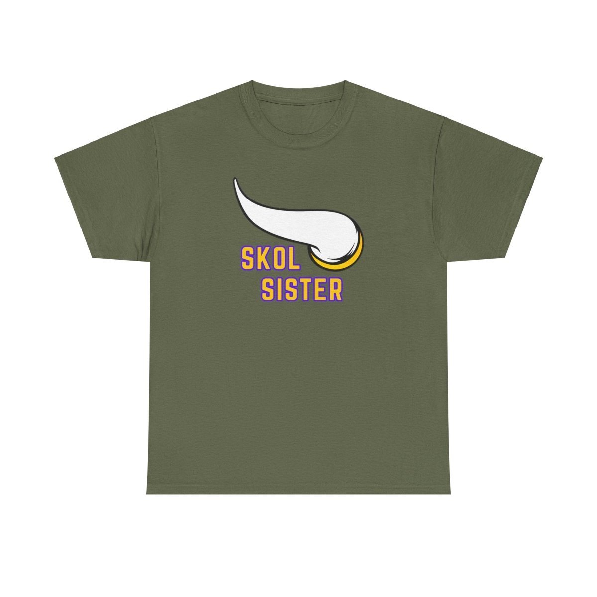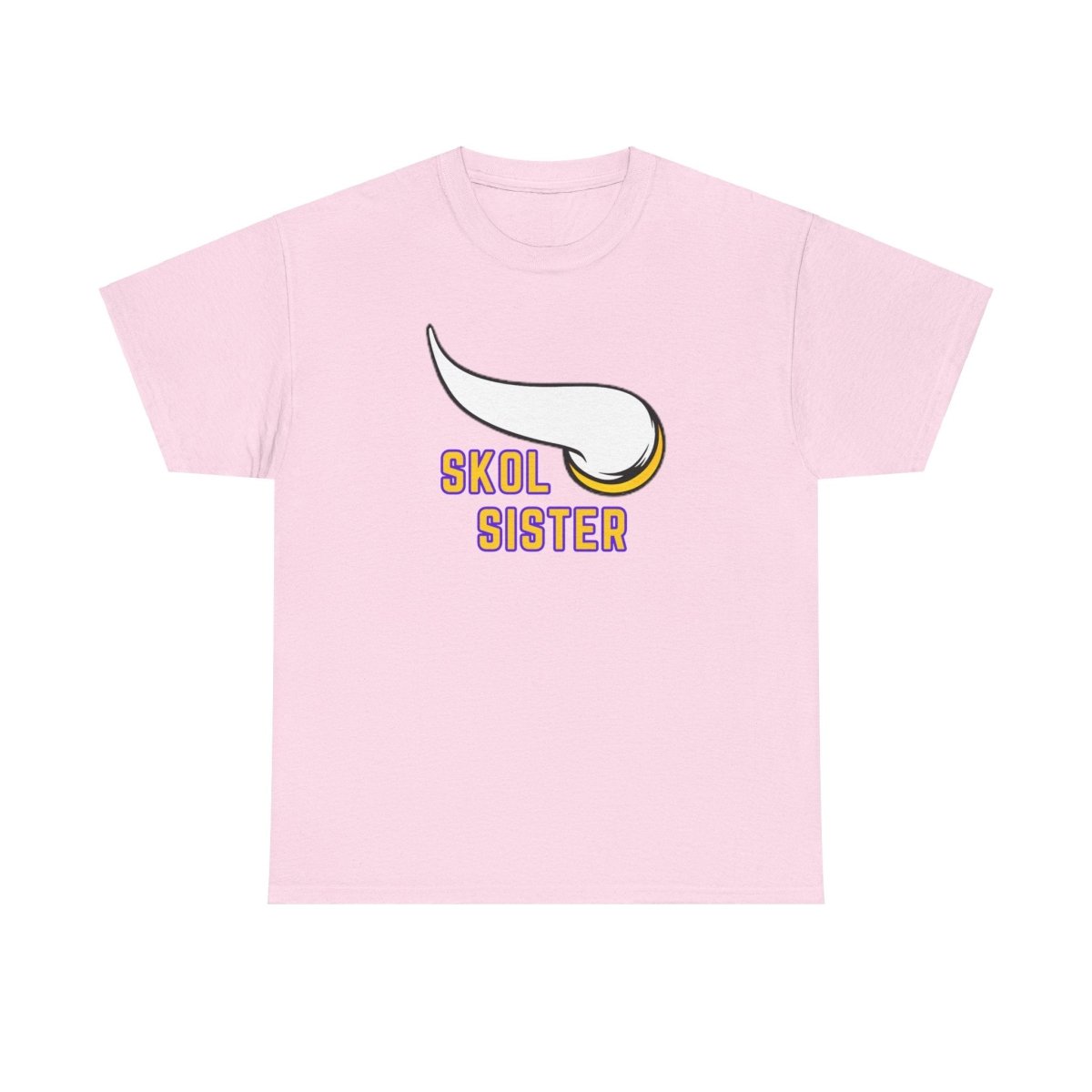A Skol sister is tee perfect for die-hard fans to show their team pride. This unisex heavy cotton tee offers year-round comfort, durability, and a classic fit for a relaxed and neat look. Ideal for game days, sports events, and everyday casual wear.