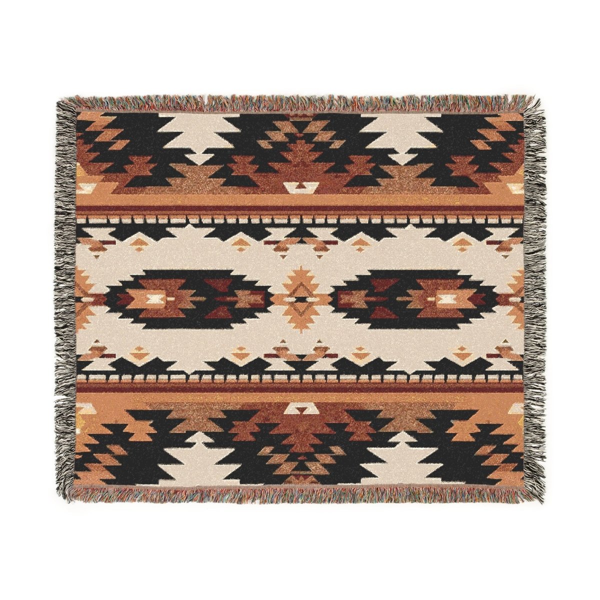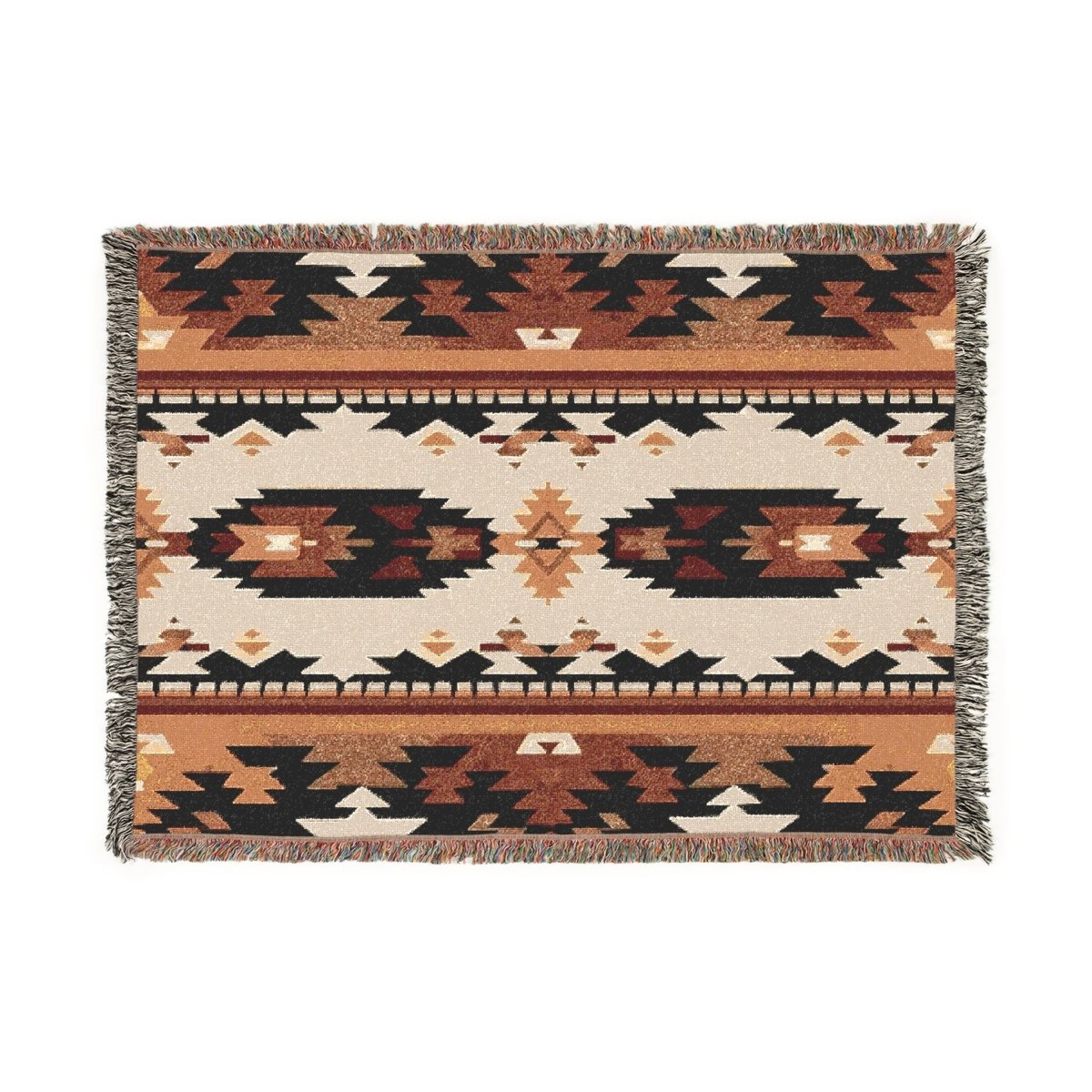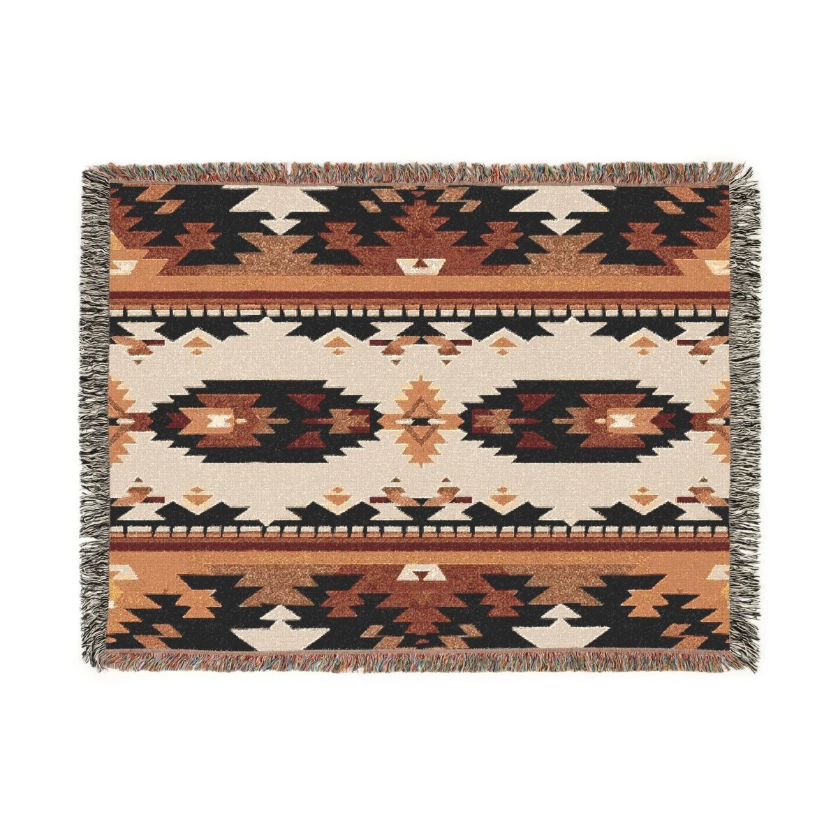 Add a touch of Navajo design to your home decor with this soft and cozy woven blanket. Perfect for those who appreciate intricate patterns and vibrant colors, this blanket is sure to bring warmth and style to any room. Ideal for those who celebrate Native American culture or enjoy bohemian-inspired decor.