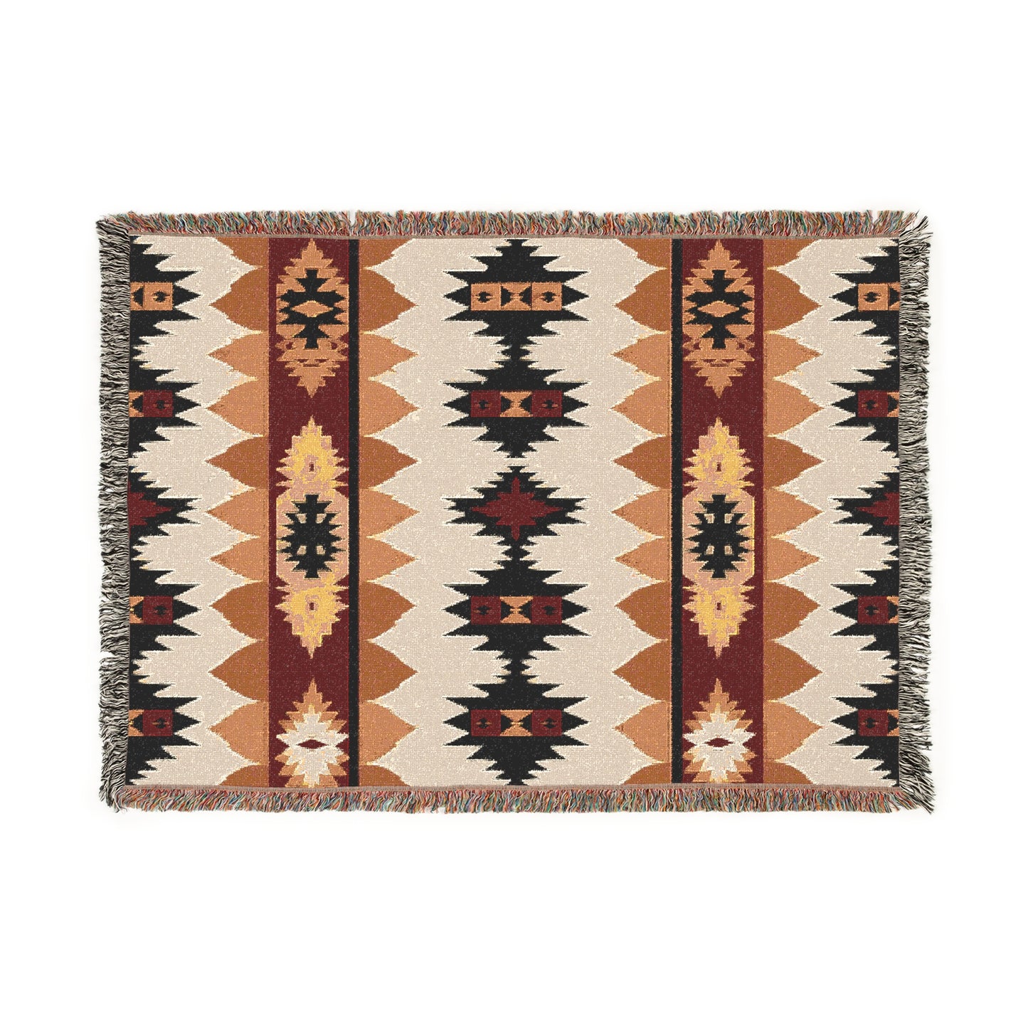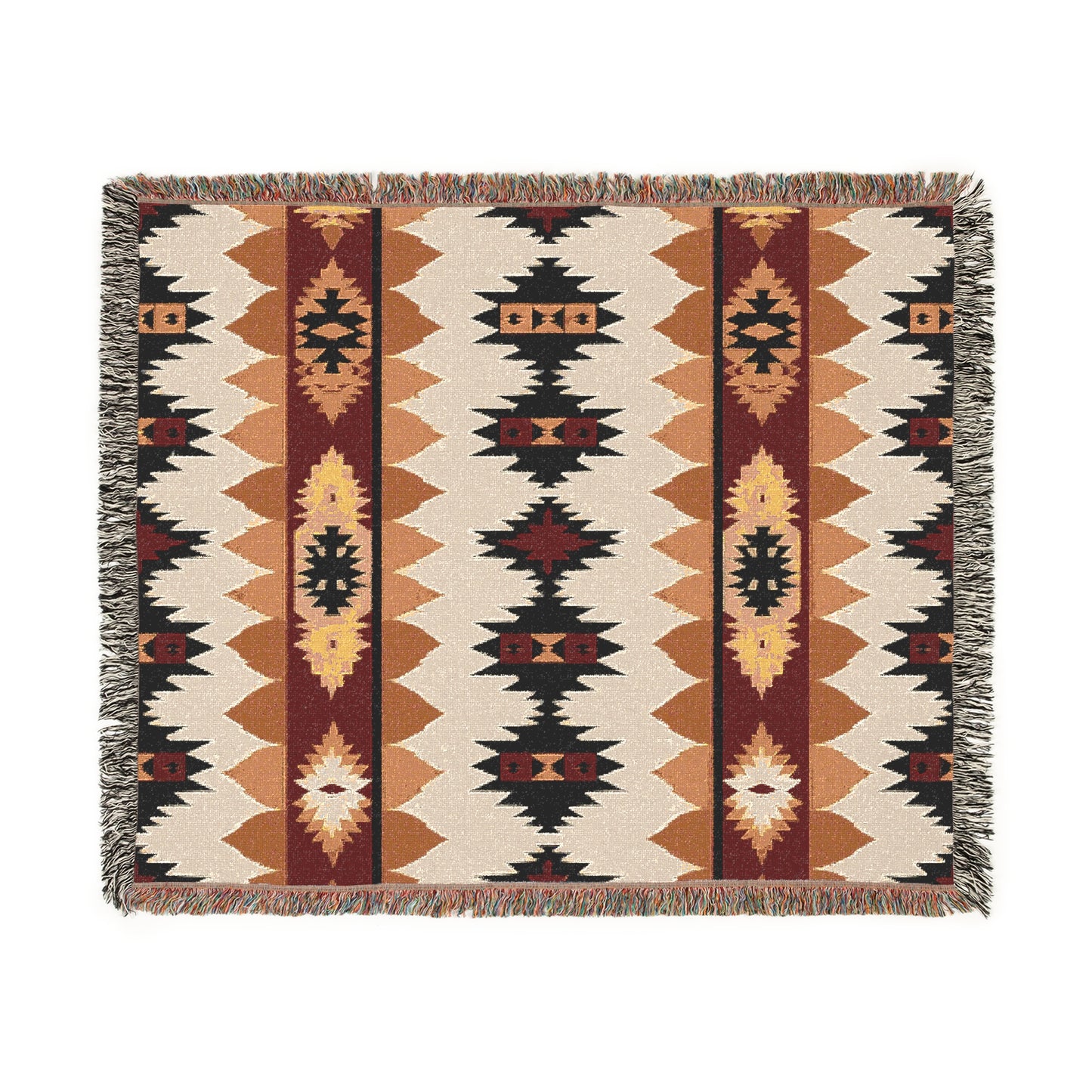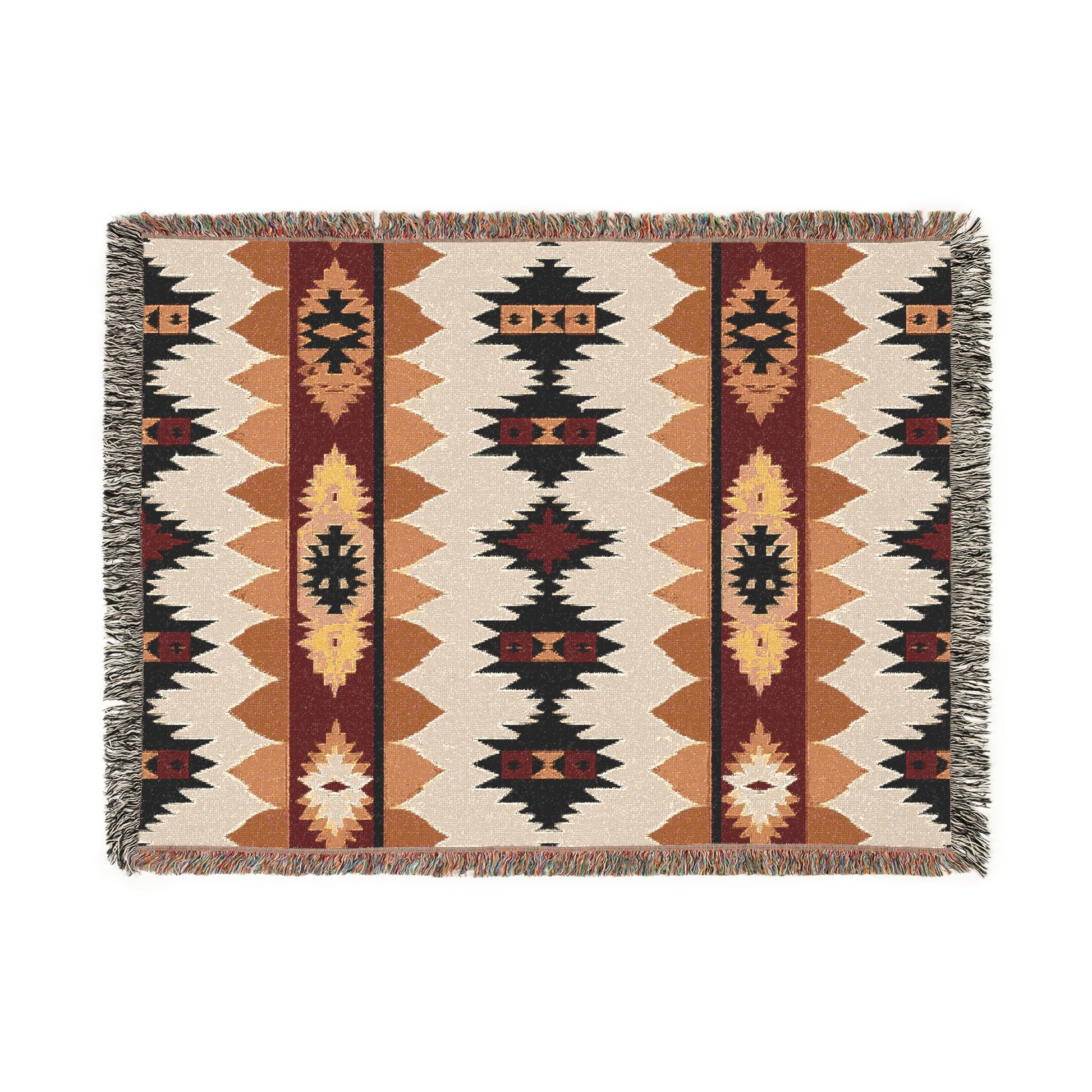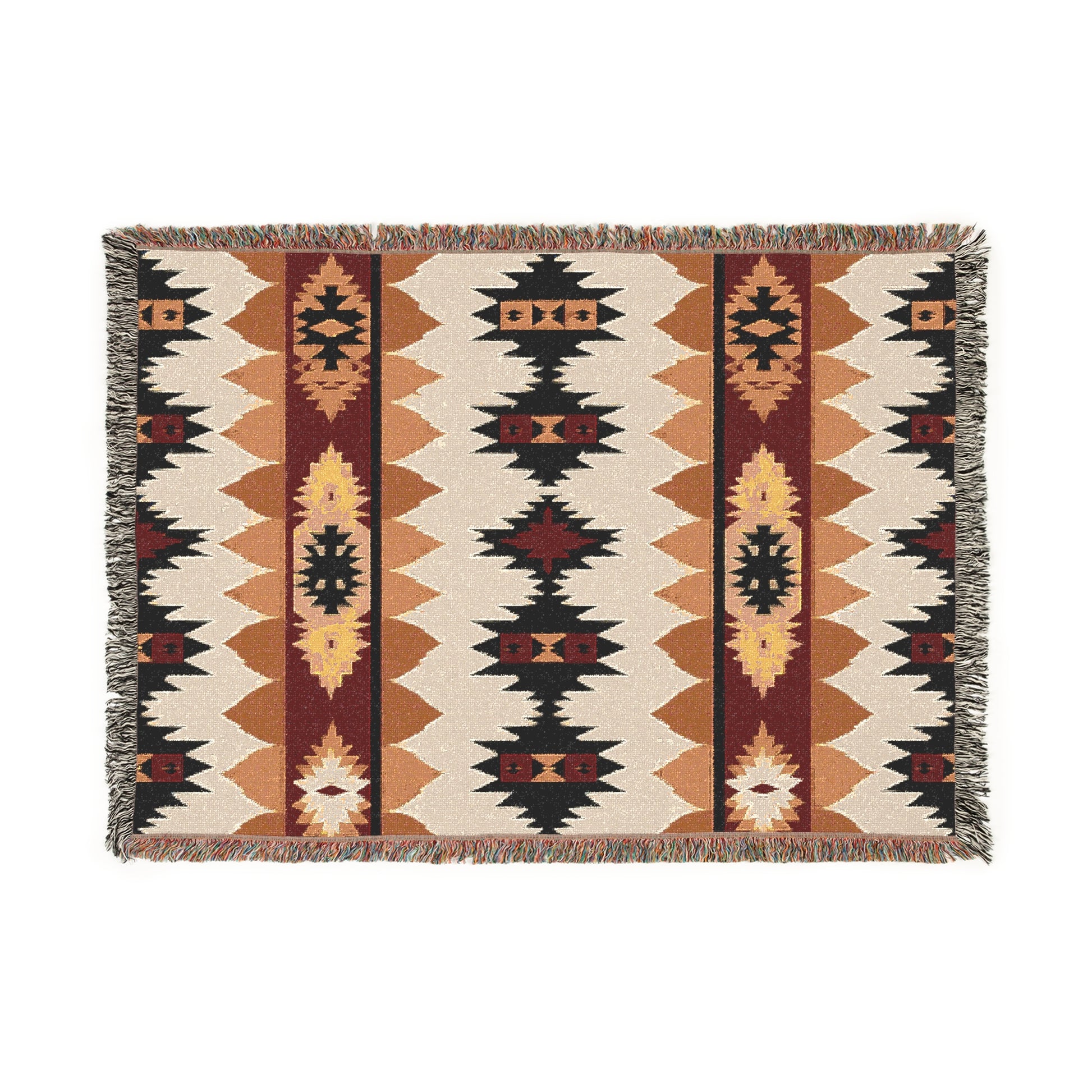 Add a touch of Navajo design to your home with this cozy Woven Blanket. Perfect for snuggling up on a cold winter night or adding a pop of color to your living room decor. Ideal for those who appreciate traditional patterns and vibrant colors. Great for gifting during holidays, birthdays, or housewarmings.