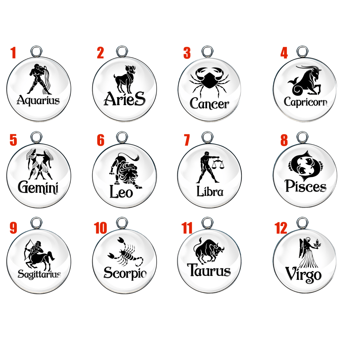 These Zodiac Glass Cabochon Charms are perfect for adding a personal touch to your accessories. Made with crystal clear glass and a durable stainless steel base, these charms will never fade. Available in silver or gold, they can be used for bracelets, necklaces, earrings, and more. Customize your style with these versatile charms.